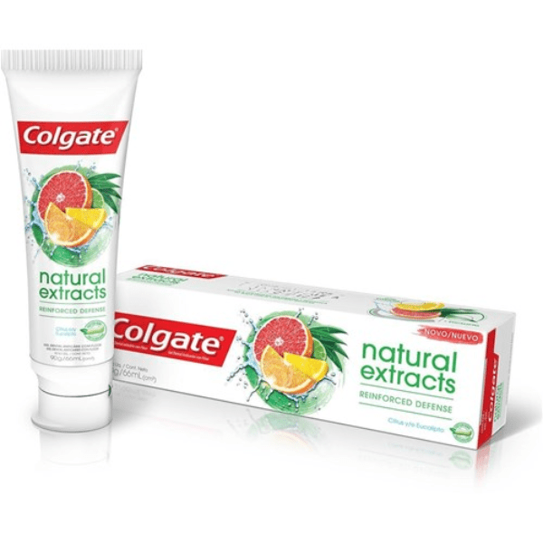 A Colgate combinou o melhor da ciência e da natureza com o novo creme dental Colgate Natural Extracts. Explosão de sabores para o cuidado do seu sorriso. Contém extratos de limão siciliano, toranja, laranja e eucalipto que ajudam a fortalecer os dentes e refrescar sua boca Ajuda a fortalecer os dentes e proporciona uma sensação natural de refrescância.
