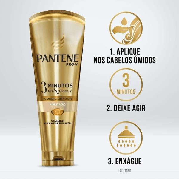 O Pantene 3 Minutos Milagrosos é um produto intenso que tem o poder de uma ampola na forma de um condicionador diário. Cabelo longo e mais forte até as pontas, hidratado desde o primeiro uso. O condicionador diário 3 Minutos Milagrosos dá mais suavidade e brilho ao seu cabelo*.