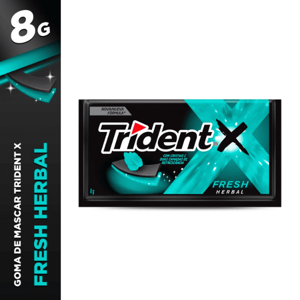 Altamente refrescante e com uma goma macia, Trident te ajuda a tornar o dia mais leve e divertido! A goma de mascar mais consumida pelos brasileiros destrava pequenos momentos de tensão a cada mascada. Trident X Fresh Herbal oferece um aroma revigorante em um chiclete zero açúcar.