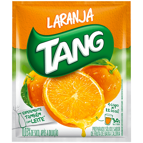 Açúcar, maltodextrina, suco de laranja desidratado, vitamina C, vitamina D, acidulante ácido cítrico, edulcorantes: aspartame (27 mg/100 mL), ciclamato de sódio (19 mg/100 mL), acesulfame de potássio (2,8 mg/100 mL) e sacarina sódica (0,1 mg/100 mL), antiumectantes: fosfato tricálcico e dióxido de silício, regulador de acidez citrato de sódio, espessantes: goma guar e goma xantana, aromatizante, corantes: dióxido de titânio, amarelo crepúsculo FCF e tartrazina e espumante extrato de quiláia.