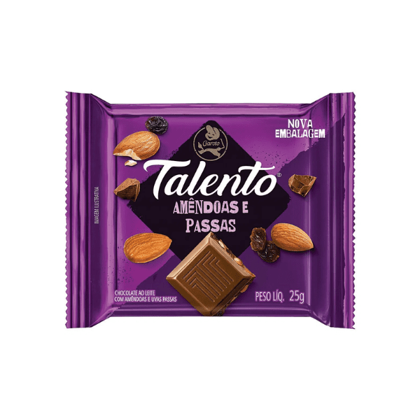 Tablete Chocolate Talento Amêndoas e Passas – 25G