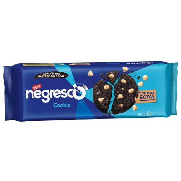 O primeiro cookie dark com gotas brancas. Todo sabor de Negresco em forma de cookie. Disponível para consumo individual.