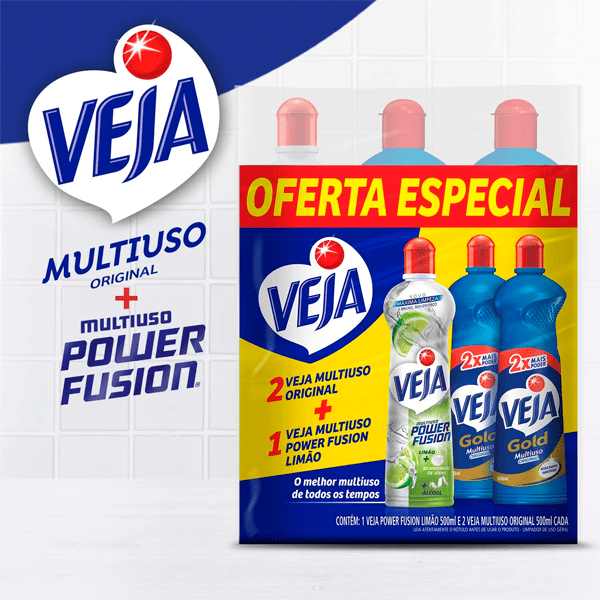 Kit Veja Limpeza Multiuso – 2 Original + 1 Power Fusion