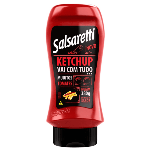 O Catchup Salsaretti sabor Tradicional tem o irresistível sabor de 17 tomates nos seus ingredientes, ideal para fazer uma pausa para o preparo de lanches e molhos.
