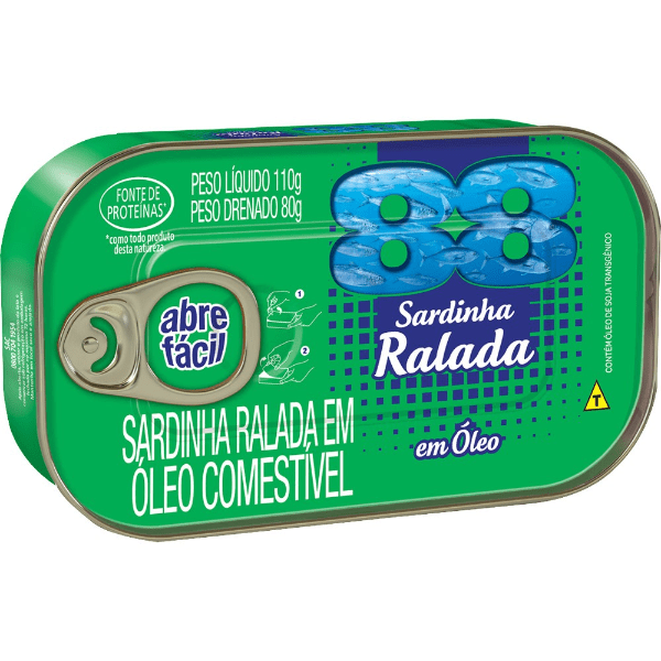 Experimente a deliciosa sardinha ralada em óleo da 88 além de prática e saborosa, você pode fazer diversos pratos com praticidade! Aproveite.