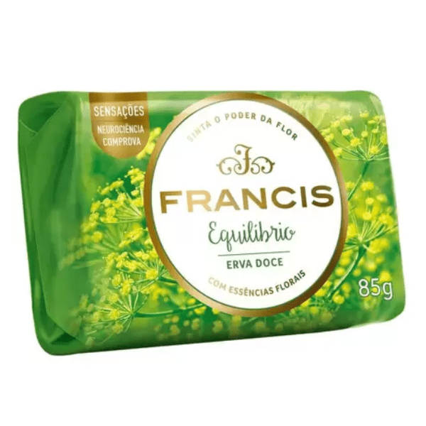 O sabonete Francis com fragrância suave e muito agradável deixa a pele suavemente perfumada, hidratada e macia com uma sensação de frescor e bem estar diariamente
