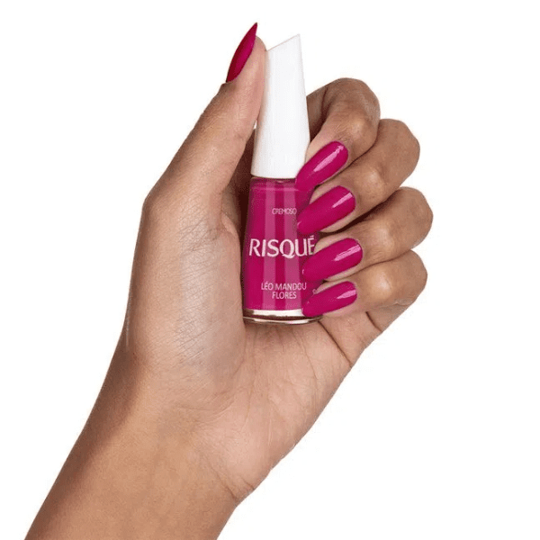 Apaixone-se pela cor, presencie a longa duração e viva a beleza de suas unhas de forma única com o Esmalte Risqué Rosa Cremoso Léo Mandou Flores.