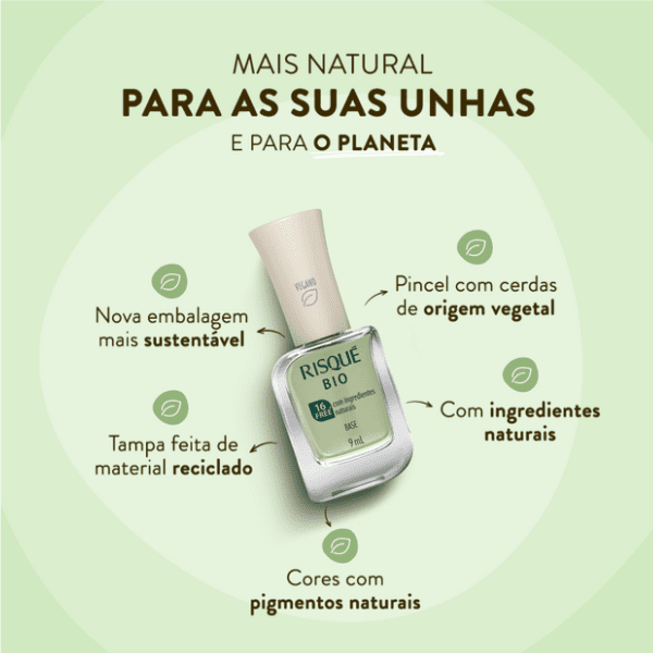 A nova linha Risqué BIO é cruelty-free e vegana, possui fórmula hipoalergênica e 16-free. Com ingredientes e pigmentos naturais, sua fórmula é enriquecida com o superfood couve kale e óleo de melaleuca. A Base Couve Kale possui cobertura transparente natural e deve ser aplicada para preparação das unhas antes da esmaltação. Com frasco único, tampa feita de plástico reciclado e pincel com 880 cerdas de origem vegetal. O portfólio conta com 1 base preparadora e 7 cores exclusivas, inspiradas na natureza. Confira!