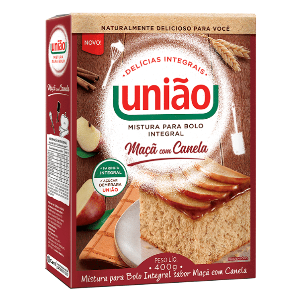 A Mistura para Bolo Integral de Maçã com Canela vai bem a qualquer hora. O cheirinho delicioso e a massa fofinha deixa todo mundo com água na boca. Feito com farinha integral e Açúcar Demerara União, a mistura cria um sabor único e delicioso que só a União tem!