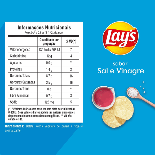 Batatas especialmente colhidas, selecionadas, fatiadas e preparadas em até 48h. Perfeitamente crocante e cheia de sabor, por isso, ela é tão especial e ideal para todos os momentos.