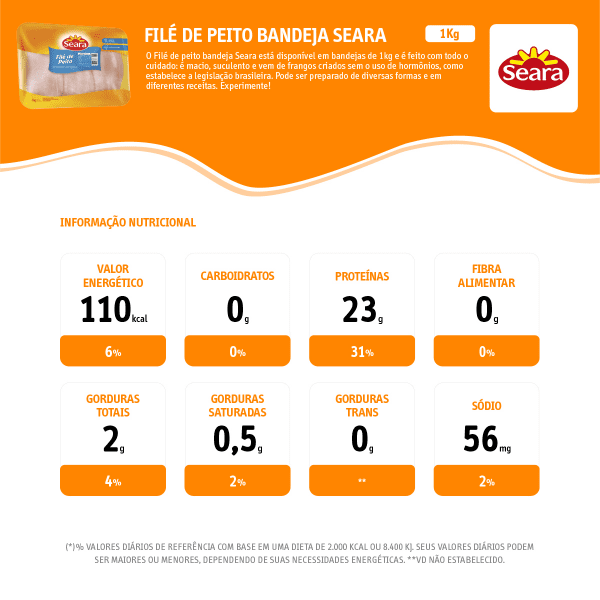 Filé Peito de Frango Congelado Seara Bandeja – 1KG