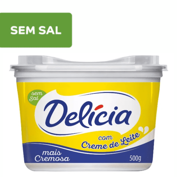 Margarina sem Sal Delícia + Sabor e Cremosidade está de cara nova. Testada e aprovada por consumidores reais, a Nova Delícia ficou muito mais cremosa e saborosa. Além de ser versátil no preparo de receitas doces e salgadas. Uma delícia de verdade!