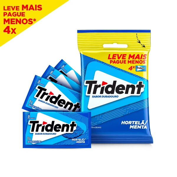 Altamente refrescante e com uma goma macia, Trident te ajuda a tornar o dia mais leve e divertido, destravando os pequenos momentos de tensão a cada mascada. Em seu formato bag com 4 pacotinhos individuais, Trident menta oferece uma deliciosa sensação de refrescância em um chiclete zero açúcar. Perfeito para ter sempre em casa ou na mochila, Trident menta é a solução perfeita para controlar a ansiedade. Masca e destrava com Trident!