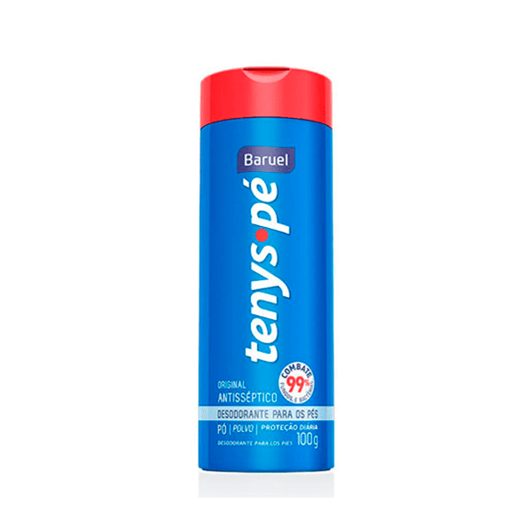 O Talco Desodorante Tenys Pé Baruel mantém seus pés protegidos e perfumados livre de odores por muito mais tempo como você sempre quis. Os pés precisam de um cuidado mais que especial por isso a linha Tenys Pé Baruel se dedica exclusivamente em proporcionar total proteção e refrescância aos seus pés todos os dias mantendo-os perfumados e sequinhos. O Talco Desodorante Tenys Pé Baruel Original possui aroma suave e controla a transpiração excessiva durante todo o dia. Seu formato em pó inibe sudorese intensiva mantendo os pés secos durante todo o dia. Uso exclusivo somente para os pés.
