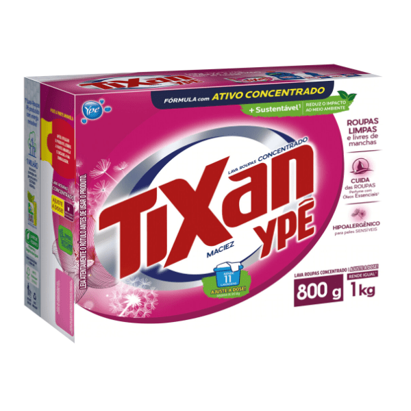 O Sabão em Pó Tixan Ypê Maciez tem qualidade garantida desde o seu lançamento. Reconhecido por sua eficiência na limpeza das roupas, Sabão em Pó Tixan Ypê Maciez oferece uma excelente relação benefício x custo! Com enzimas ativas, Sabão em Pó Tixan Ypê Maciez limpa as sujeiras mais difíceis e deixa um agradável perfume que prolonga a sensação de roupa limpa! A fórmula do Sabão em Pó Tixan Ypê Maciez é livre de fosfato, contribuindo com a preservação do meio ambiente!