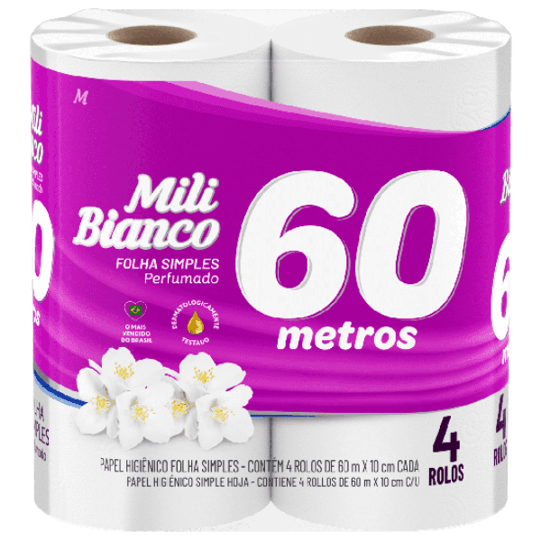 Papel Higiênico Mili Bianco Perfumado 60m – 4und