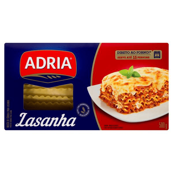 Uma reunião de família precisa ter comida boa e muita alegria. A massa para lasanha com sêmola da Adria é perfeita para esses encontros. A embalagem de 500g serve até 15 pessoas e tem preparo muito fácil. Leve direto ao forno sua lasanha Adria, escolha o molho de sua preferência e garanta um delicioso momento para todos!