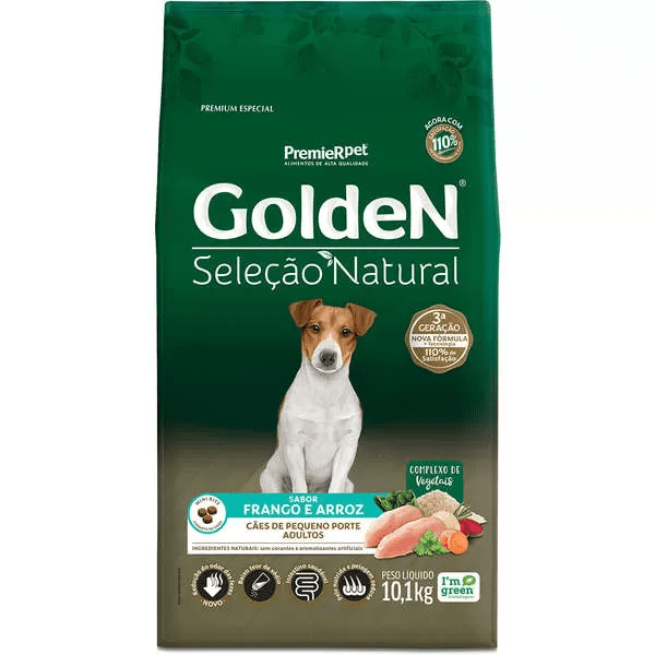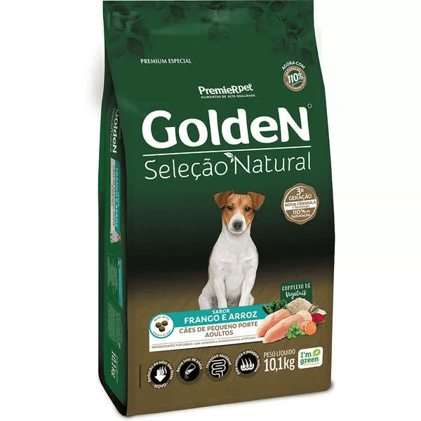 Ração Golden Seleção Natural Cães Adultos Porte Pequeno Frango e Arroz – 10,1Kg
