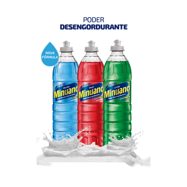 A eficiência e rendimento do Detergente Lava-Louças Minuano que você já conhece, agora de cara nova.