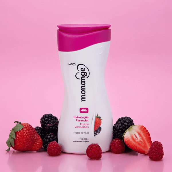 O Hidratante Monange Hidratação Essencial Frutas Vermelhas com Ação Desodorante 200ml entrega uma fragrância frutal delicada. Sua fórmula mantém a pele hidratada por 48h, possui ativos antioxidantes e nutre até a segunda camada da derme. Além disso, ele é indicado para todos os tipos de pele.