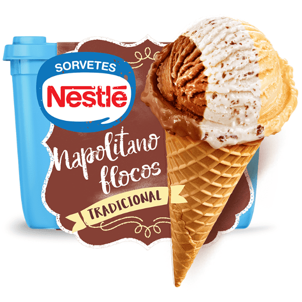 Saboroso, o Sorvete Nestlé Napolitano Flocos vem em pote de 1,5 litro e é perfeito para levar no almoço de domingo. Cremoso, o Sorvete Nestlé Napolitano Flocos vai bem com petit gateau, bolo e brownie.