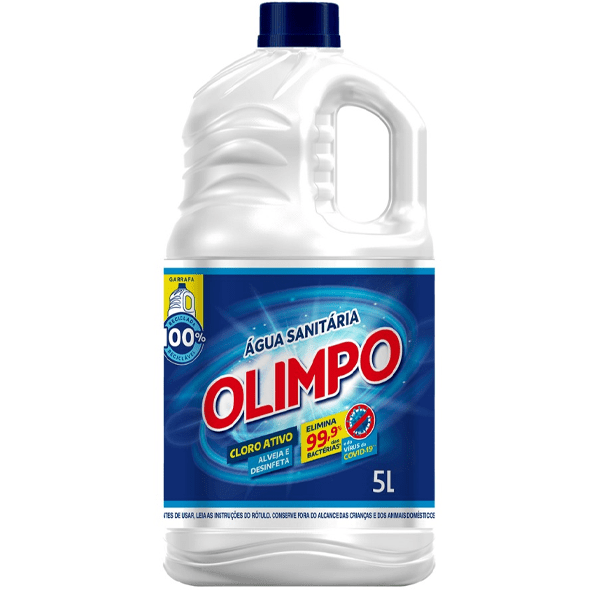 A Água Sanitária Olimpo possui um teor ideal de cloro ativo, tem ação bactericida, alvejante e elimina odores. Além da sua principal função de alvejamento de roupas brancas, também pode ser usada na limpeza geral da casa.